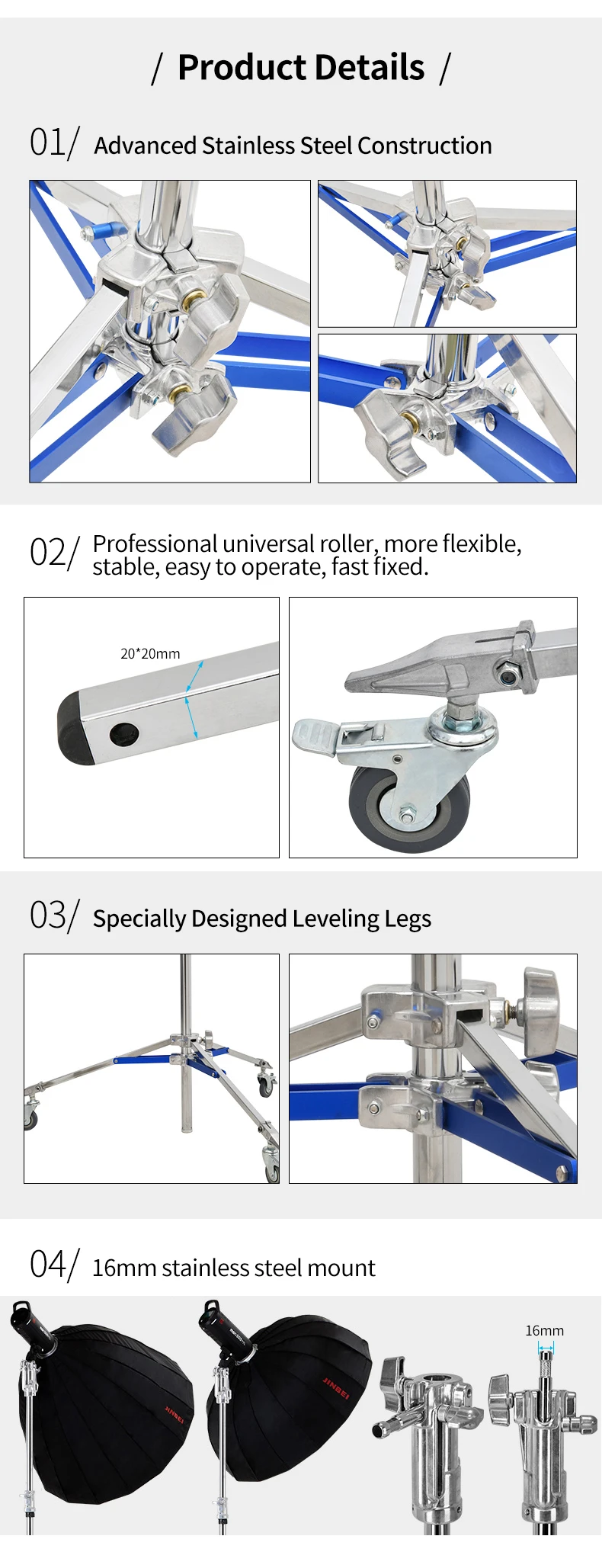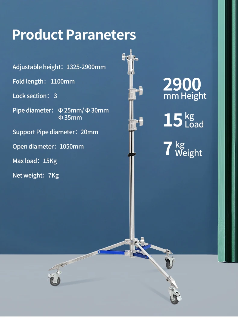 JINBEI JB290A Light Stand Professional Studio Stainless Steel Tripod Photography Live Streaming Room Holder Shooting Equipment